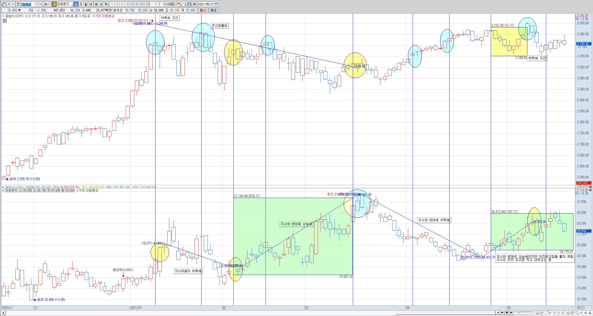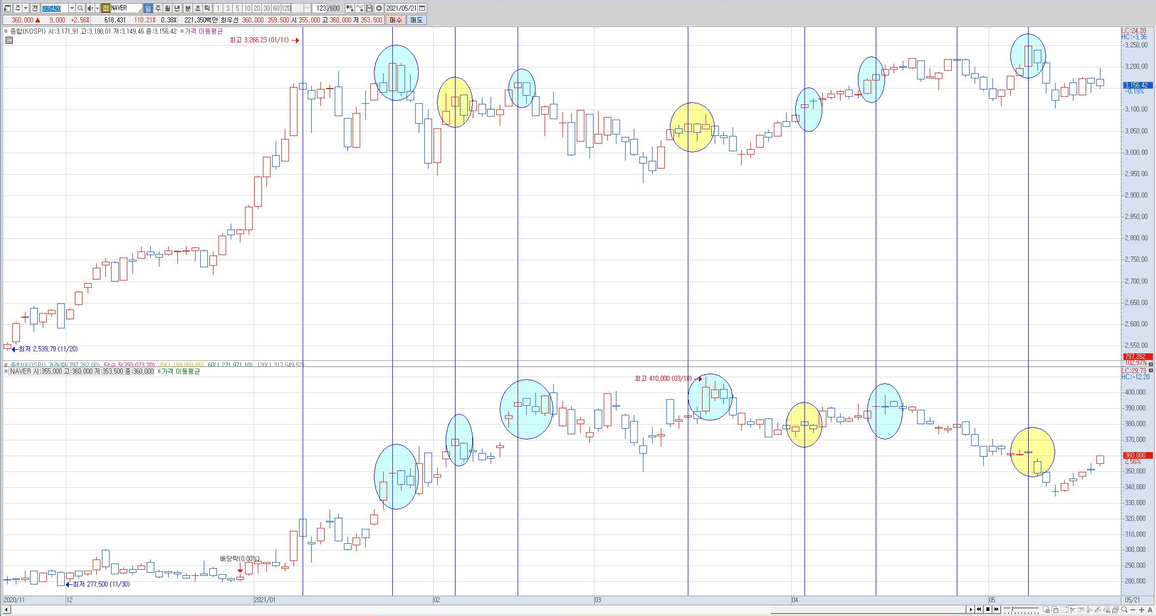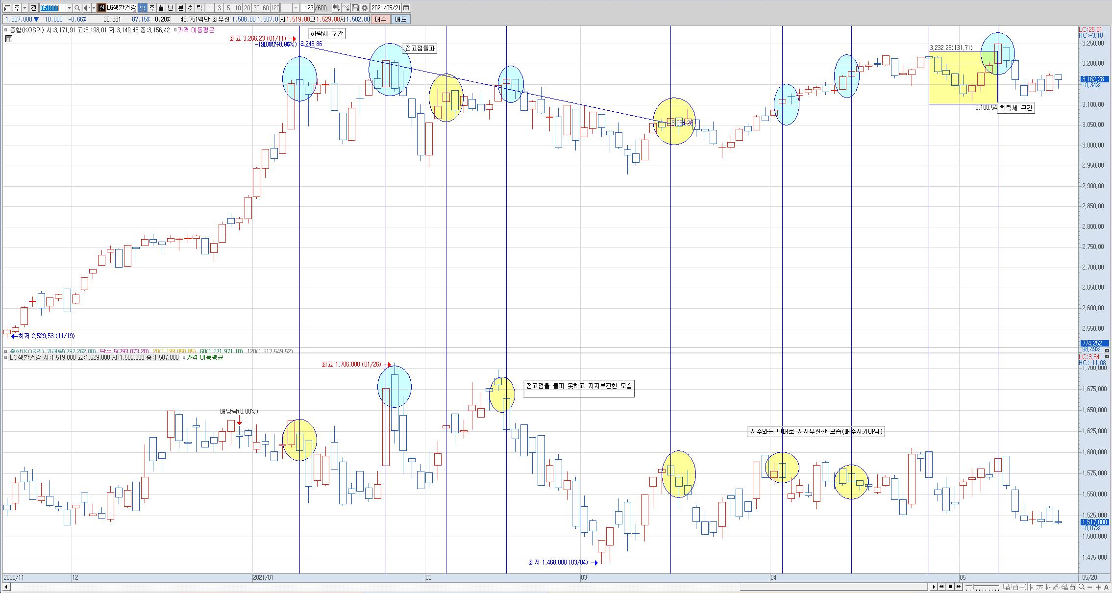 : 현재로서는 지수는 전고점 아래로. 종목은 전고점 부근에서 지지받는 중